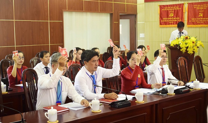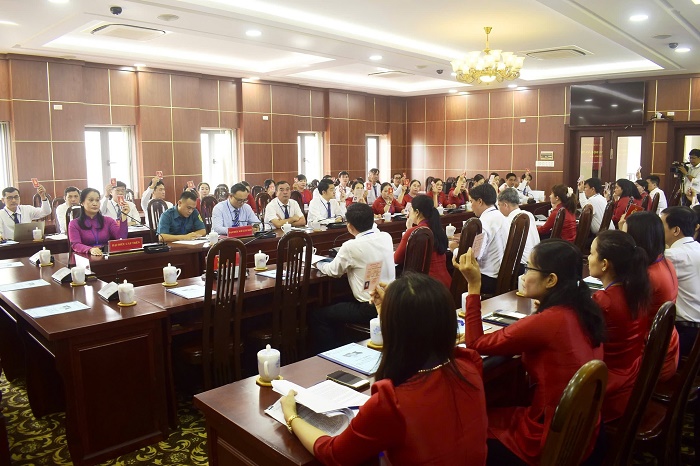 Đại biểu giơ phiếu thống nhất các nội dung quan trọng tại Đại hội