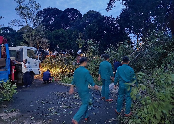 Bên cạnh sự vào cuộc nhanh chóng của lực lượng chức năng, công tác thu dọn cây xanh gãy đổ, quét dọn cành cây và xử lý rác thải phát sinh sau mưa giông đã được triển khai đồng bộ, góp phần lập lại trật tự môi trường và đảm bảo vệ sinh đô thị. Đội ngũ công nhân thuộc Hợp tác xã môi trường Trúc Anh đã khẩn trương có mặt tại các trọng điểm để thực hiện công việc dọn dẹp. Ông Đỗ Khắc Long – đại diện Hợp tác xã môi trường Trúc Anh cho biết: “Ngay khi nhận được thông tin từ chính quyền phường, chúng tôi đã huy động đầy đủ nhân sự và phương tiện ra hiện trường. Các nhóm công nhân chia nhau xử lý theo khu vực, ưu tiên các điểm cây ngã, bảng hiệu đổ ra đường, gây cản trở giao thông hoặc tiềm ẩn nguy hiểm cho người dân. Nhờ có sự phối hợp chặt chẽ giữa các lực lượng nên công tác dọn dẹp diễn ra khá thuận lợi. Mặc dù thời tiết có lúc còn bất lợi, anh em vẫn cố gắng làm việc hết mình để trả lại cảnh quan sạch sẽ cho địa phương.”