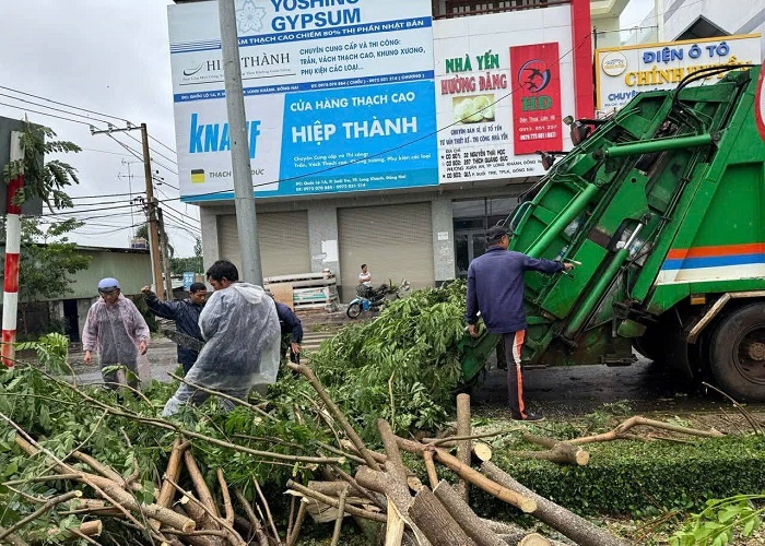 Ngay sau đó, chính quyền địa phương đã có mặt tại hiện trường và khẩn trương triển khai lực lượng đến các điểm bị ảnh hưởng khắc phục hậu quả. Lực lượng dân quân, đoàn viên thanh niên phối hợp cùng Điện lực Long Khánh, Hợp tác xã môi trường Trúc Anh đã nhanh chóng tham gia hỗ trợ người dân thu dọn cây xanh ngã đổ, che chắn những phần mái nhà bị hư hỏng và đảm bảo an toàn giao thông tại các tuyến đường bị ảnh hưởng.