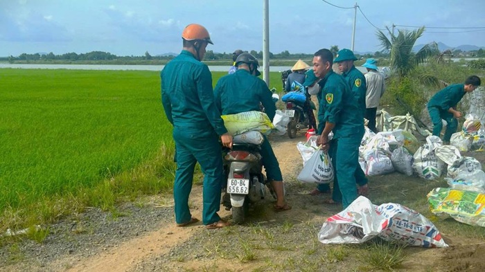 Lực lượng chức năng tại địa phương hỗ trợ ứng cứu và gia cố các điểm có nguy cơ ngập úng