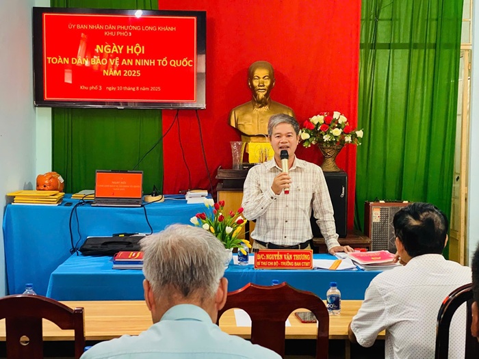 Phát biểu tại hội nghị, ôngTrần Bá Linh - Ủy viên BCH Đảng bộ, Phó Chủ tịch Ủy ban MTTQ Việt Nam phường, Chủ tịch Hội nông dân phường Long Khánh nhấn mạnh: Khu phố 3 cần tiếp tục quán triệt sâu sắc các Chỉ thị, Nghị quyết của cấp trên về công tác đảm bảo an ninh, quốc phòng. Thực hiện hiệu quả việc lồng ghép phong trào "Toàn dân bảo vệ ANTQ" với cuộc vận động "Toàn dân đoàn kết xây dựng đời sống văn hóa", hướng tới xây dựng khu phố văn minh, không còn tệ nạn xã hội. Tiếp tục củng cố, xây dựng lực lượng công an phường, bảo vệ dân phố trong sạch, vững mạnh, gần dân, sát dân và làm tốt công tác phục vụ nhân dân.