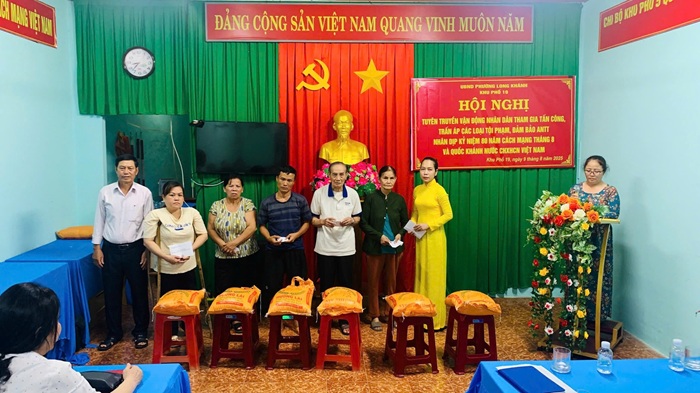 Kết thúc chương trình ngày hội, Ban Nhân dân khu phố đã trao tặng quà cho các hộ gia đình có hoàn cảnh khó khăn và khen thưởng những cá nhân có thành tích xuất sắc trong phong trào “Toàn dân tham gia bảo vệ an ninh Tổ quốc”. Ngày hội không chỉ góp phần củng cố tinh thần đoàn kết, trách nhiệm trong cộng đồng mà còn tạo nền tảng vững chắc cho sự ổn định và phát triển của địa phương.