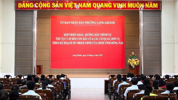 <div class="x14z9mp xat24cr x1lziwak x1vvkbs xtlvy1s x126k92a" style="-webkit-text-stroke-width:0px;animation-name:none !important;background-color:rgb(255, 255, 255);color:rgb(8, 8, 9);font-family:&#039;Segoe UI Historic&#039;, &#039;Segoe UI&#039;, Helvetica, Arial, sans-serif;font-size:15px;font-style:normal;font-variant-caps:normal;font-variant-ligatures:normal;font-weight:400;letter-spacing:normal;margin-bottom:0px;margin-inline:0px;margin-top:0.5em;orphans:2;overflow-wrap:break-word;text-align:start;text-decoration-color:initial;text-decoration-style:initial;text-decoration-thickness:initial;text-indent:0px;text-transform:none;transition-property:none !important;white-space:pre-wrap;widows:2;word-spacing:0px;"><div style="animation-name:none !important;font-family:inherit;text-align:justify;transition-property:none !important;" dir="auto"><span style="color:hsl(0, 0%, 0%);font-family:&#039;Times New Roman&#039;, Times, serif;font-size:22px;">Sáng ngày 20/4/2026, UBND phường Long Khánh tổ chức cuộc họp  triển khai hướng dẫn trình tự thủ tục cấp đổi con dấu của các cơ quan, đơn vị theo Kế hoạch số 198/KH-UBND ngày 17/4/2026 của UBND tỉnh Đồng Nai.</span></div><figure class="image"><img style="aspect-ratio:600/337;" src="https://longkhanh.dongnai.gov.vn/uploads/longkhanh/news/2026_04/260421-21_1.jpg" width="600" height="337" /></figure></div><div class="x14z9mp xat24cr x1lziwak x1vvkbs xtlvy1s x126k92a" style="-webkit-text-stroke-width:0px;animation-name:none !important;background-color:rgb(255, 255, 255);color:rgb(8, 8, 9);font-family:&#039;Segoe UI Historic&#039;, &#039;Segoe UI&#039;, Helvetica, Arial, sans-serif;font-size:15px;font-style:normal;font-variant-caps:normal;font-variant-ligatures:normal;font-weight:400;letter-spacing:normal;margin-bottom:0px;margin-inline:0px;margin-top:0.5em;orphans:2;overflow-wrap:break-word;text-align:start;text-decoration-color:initial;text-decoration-style:initial;text-decoration-thickness:initial;text-indent:0px;text-transform:none;transition-property:none !important;white-space:pre-wrap;widows:2;word-spacing:0px;"><div style="animation-name:none !important;font-family:inherit;text-align:justify;transition-property:none !important;" dir="auto"><span style="color:hsl(0, 0%, 0%);font-family:&#039;Times New Roman&#039;, Times, serif;font-size:22px;">Tại cuộc họp, đại diện các cơ quan, đơn vị trên địa bàn phường đã được đồng chí Trần Trung Nguyên – Phó Trưởng Công an phường Long Khánh phổ biến, hướng dẫn cụ thể các nội dung liên quan đến việc cấp đổi con dấu theo quy định. Theo thống kê, tổng số con dấu của các cơ quan, đơn vị đề nghị cấp đổi trên địa bàn là 79 con dấu. Việc triển khai được thực hiện theo phương châm “tập trung, đồng loạt, không ùn tắc”, nhằm bảo đảm tiến độ, hiệu quả và thuận lợi cho các đơn vị.</span></div></div><div class="x14z9mp xat24cr x1lziwak x1vvkbs xtlvy1s x126k92a" style="-webkit-text-stroke-width:0px;animation-name:none !important;background-color:rgb(255, 255, 255);color:rgb(8, 8, 9);font-family:&#039;Segoe UI Historic&#039;, &#039;Segoe UI&#039;, Helvetica, Arial, sans-serif;font-size:15px;font-style:normal;font-variant-caps:normal;font-variant-ligatures:normal;font-weight:400;letter-spacing:normal;margin-bottom:0px;margin-inline:0px;margin-top:0.5em;orphans:2;overflow-wrap:break-word;text-align:start;text-decoration-color:initial;text-decoration-style:initial;text-decoration-thickness:initial;text-indent:0px;text-transform:none;transition-property:none !important;white-space:pre-wrap;widows:2;word-spacing:0px;"><div style="animation-name:none !important;font-family:inherit;text-align:justify;transition-property:none !important;" dir="auto"><span style="color:hsl(0, 0%, 0%);font-family:&#039;Times New Roman&#039;, Times, serif;font-size:22px;">Dự kiến vào lúc 08 giờ ngày 30/4/2026, Công an phường Long Khánh sẽ tổ chức thu hồi con dấu cũ và thu phí thực hiện cấp đổi con dấu. Đồng thời, Công an phường sẽ là đầu mối hướng dẫn các cơ quan, tổ chức chuẩn bị đầy đủ hồ sơ, thực hiện nộp hồ sơ trên Cổng Dịch vụ công Bộ Công an theo đúng quy trình.</span></div></div><div class="x14z9mp xat24cr x1lziwak x1vvkbs xtlvy1s x126k92a" style="-webkit-text-stroke-width:0px;animation-name:none !important;background-color:rgb(255, 255, 255);color:rgb(8, 8, 9);font-family:&#039;Segoe UI Historic&#039;, &#039;Segoe UI&#039;, Helvetica, Arial, sans-serif;font-size:15px;font-style:normal;font-variant-caps:normal;font-variant-ligatures:normal;font-weight:400;letter-spacing:normal;margin-bottom:0px;margin-inline:0px;margin-top:0.5em;orphans:2;overflow-wrap:break-word;text-align:start;text-decoration-color:initial;text-decoration-style:initial;text-decoration-thickness:initial;text-indent:0px;text-transform:none;transition-property:none !important;white-space:pre-wrap;widows:2;word-spacing:0px;"><div style="animation-name:none !important;font-family:inherit;text-align:justify;transition-property:none !important;" dir="auto"><span style="color:hsl(0, 0%, 0%);font-family:&#039;Times New Roman&#039;, Times, serif;font-size:22px;">UBND phường Long Khánh yêu cầu các cơ quan, tổ chức trên địa bàn khẩn trương gửi lại giấy chứng nhận đăng ký mẫu con dấu về Công an phường chậm nhất trong ngày 21/4/2026, góp phần bảo đảm công tác cấp đổi con dấu được triển khai đồng bộ, đúng quy định, phục vụ hiệu quả hoạt động quản lý nhà nước trên địa bàn.</span></div><div style="animation-name:none !important;font-family:inherit;text-align:justify;transition-property:none !important;" dir="auto">&nbsp;</div></div>