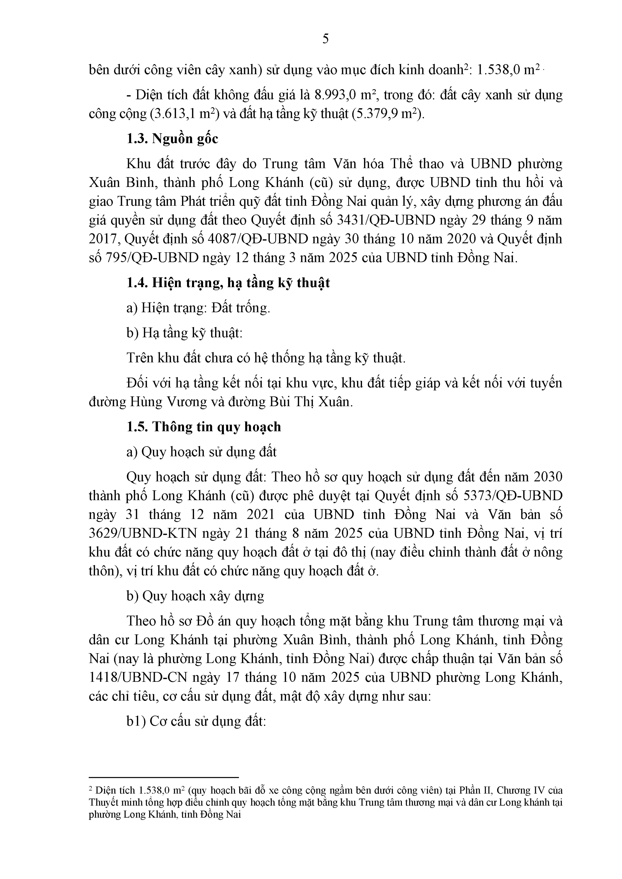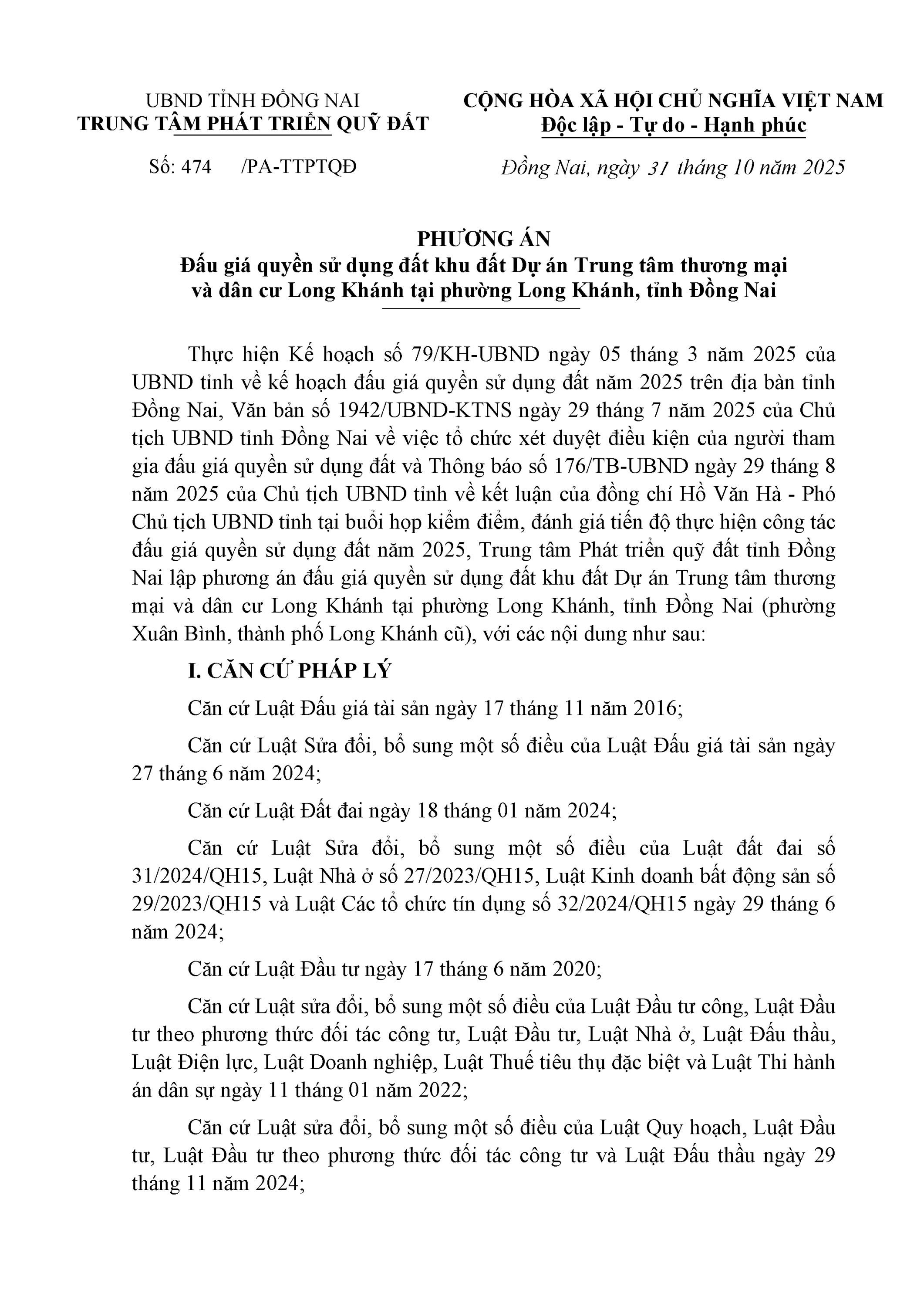 PHƯƠNG ÁNĐấu giá quyền sử dụng đất khu đất Dự án Trung tâm thương mại và dân cư Long Khánh tại phường Long Khánh, tỉnh Đồng Nai