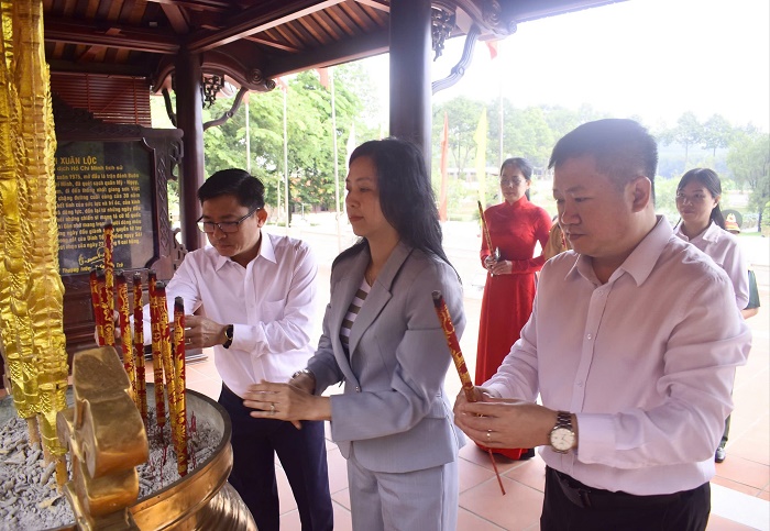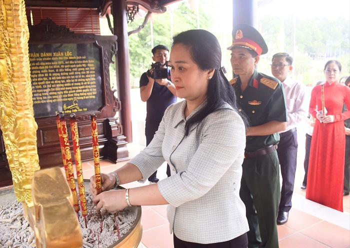 Trước đó, Đoàn công tác số 5 đã đến tại Đền thờ liệt sĩ dâng hương tưởng nhớ Bác Hồ kính yêu và 5.386 liệt sĩ hy sinh trong các cuộc kháng chiến bảo vệ độc lập của Tổ quốc.